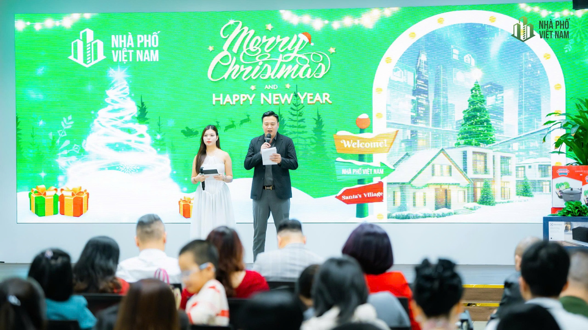 Ngay từ những phút đầu chương trình, không khí Giáng Sinh đã ngập tràn khắp hội trường với hình ảnh ông già Noel phát kẹo, những nụ cười rạng rỡ và sự háo hức của các thành viên Nhà Phố Việt Nam. Lời dẫn duyên dáng, gần gũi của hai MC Nguyễn Nam và Khánh Ngân đã mở ra một buổi tối tràn đầy năng lượng, chính thức khởi động chương trình “Giáng Sinh Gắn Kết” trong sự mong chờ và hưởng ứng nhiệt tình của toàn thể hội trường.
