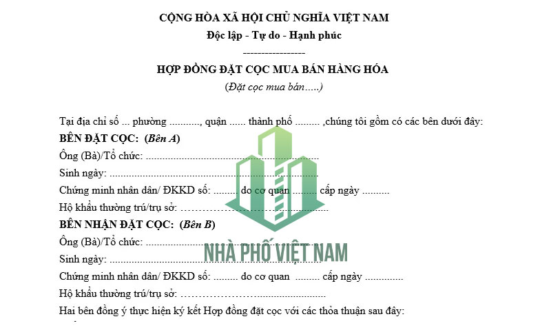 Hợp đồng đặt cọc là sự thỏa thuận giữa bên mua và bên bán, trong đó bên mua giao cho bên bán một khoản tiền (gọi là tiền cọc) để đảm bảo việc ký kết và thực hiện hợp đồng mua bán nhà đất trong tương lai. Theo quy định của pháp luật dân sự, đặt cọc là một biện pháp bảo đảm nghĩa vụ. Điều này có nghĩa: