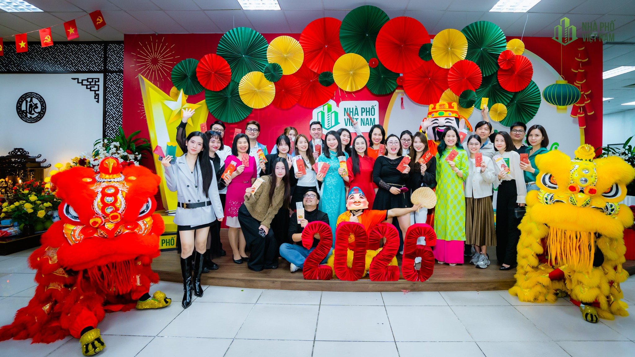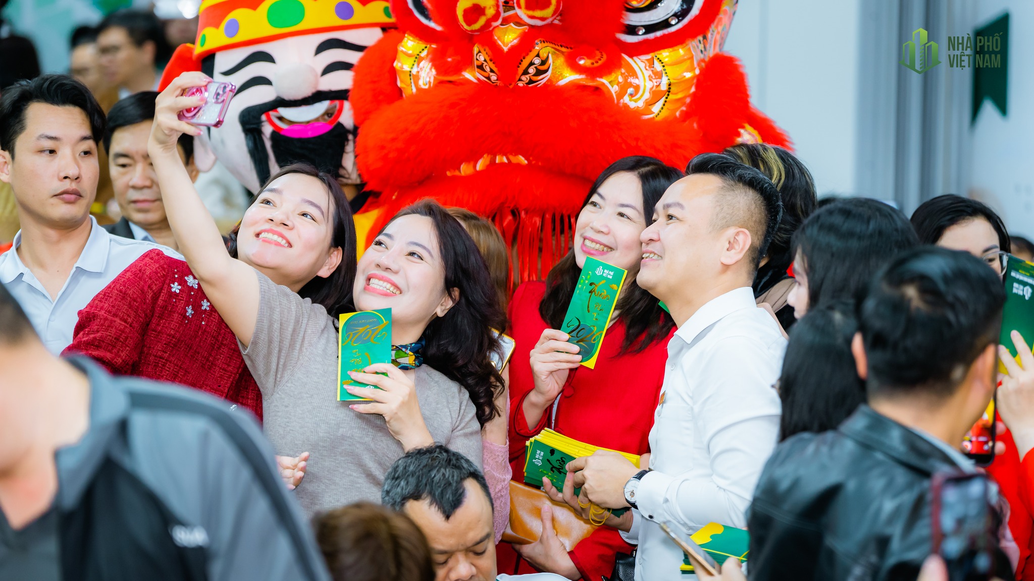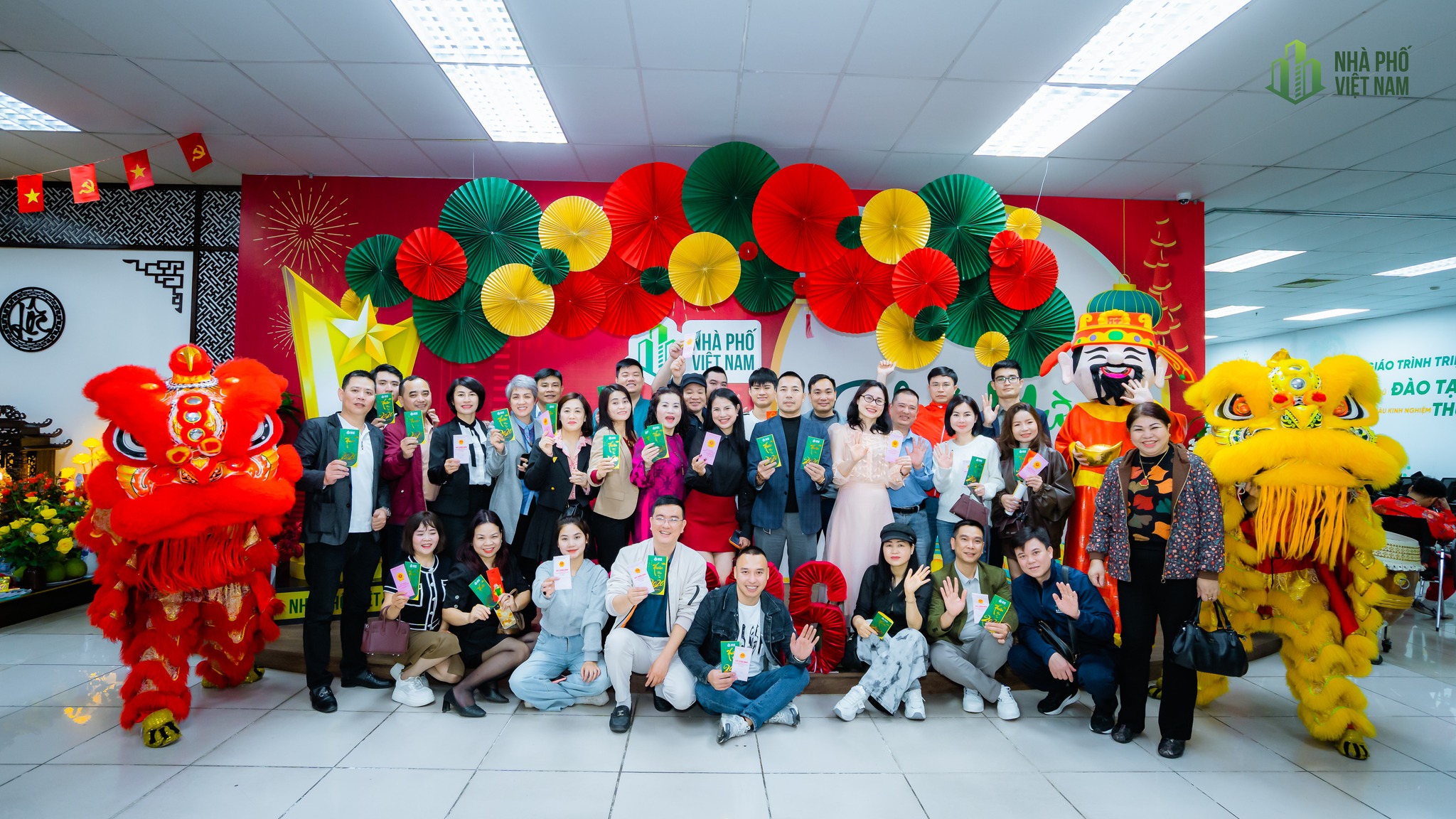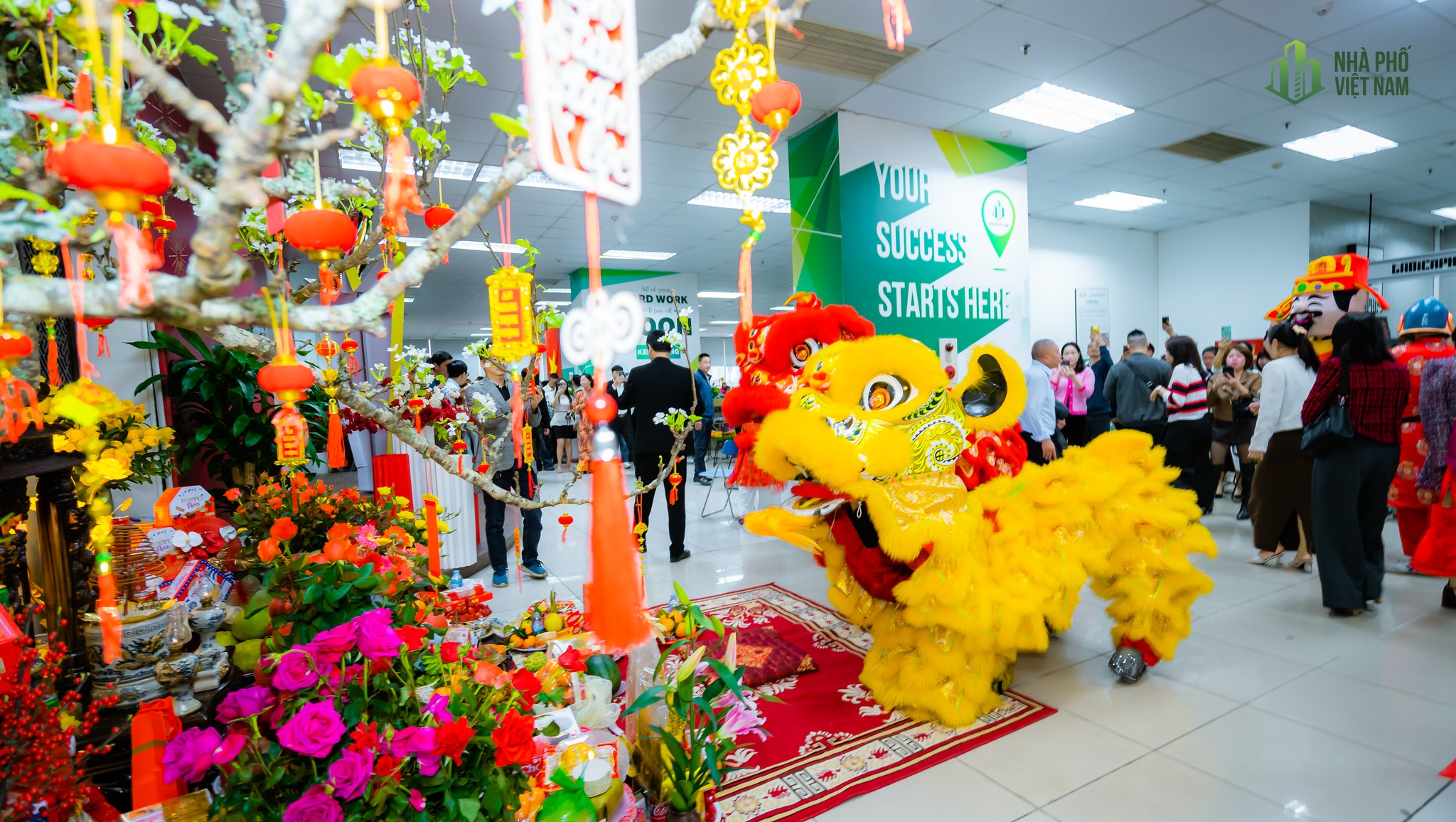 Buổi khai xuân diễn ra trong không gian ngập tràn sắc xanh thương hiệu Nhà Phố Việt Nam – biểu trưng cho sự bền bỉ, minh bạch và khát vọng tăng trưởng dài hạn. Những màn lân – sư – rồng khai vận đầu năm mang theo thông điệp cát tường, hanh thông, mở ra một năm mới nhiều may mắn và thắng lợi cho toàn hệ thống.