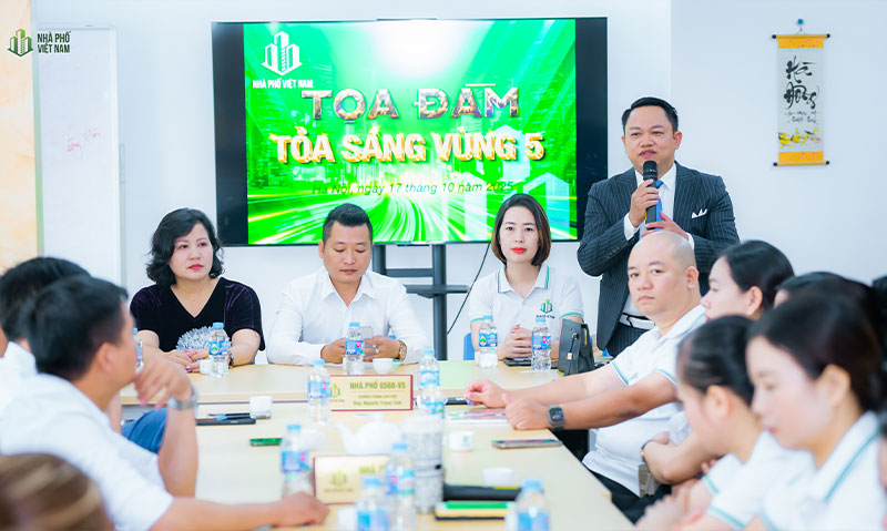 Sự kiện Tọa đàm “Phát triển vùng và nâng cao năng lực đội ngũ tư vấn môi giới” tại Vùng 5 - Nhà Phố Việt Nam được đánh giá là dấu ấn nổi bật trong hành trình củng cố nội lực, hoàn thiện kỹ năng và gắn kết đội ngũ của Tập đoàn Nhà Phố Việt Nam – Vùng 5.